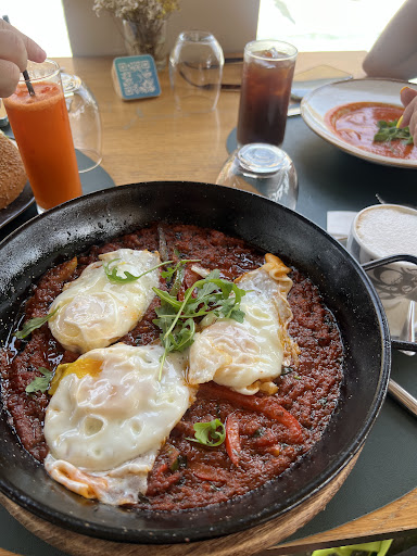 Read moreI wrote my review a few years ago, it was mostly about the dinner “dine in” and the music, it was horrible for the place of this level. Then I wrote about too salty shakshuka (my friend ate it in and I ordered delivery) , we both like salty and spicy things though. So, about last time: I reserved a table an evening before for the brunch, waiters were confused where to sit us. They have chosen the inside table and it was incredibly hot in there, we asked twice to have table outside and got answered only before paying “they are all booked”, but we have seen many spare tables outside through the time of our brunching. Afterwards - no-one is coming to check on you. The waiter was not taking notes, I have asked to make my shakshuka without salt at all and told about our previous experiences about too salty dishes, still it came salty. We wanted to order something more, but nobody reacted to us. The bill. It took ages to ask for the bill and another for paying, that’s why we were not complaining on a time, cause we were in a hurry to go. Spent 3 hours there when planning 1.