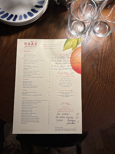 Last week, I visited Πολύ restaurant in Limassol with a friend. I ordered the lamb keftedes plate with baked veggies, and my friend had the sea bass. The food was truly delicious – my plate was beautifully presented, with vibrant colors from the vegetables that made it visually stunning. The decor was very elegant, as were the tables and overall setting. However, despite the name and location, there was nothing Greek about the atmosphere. No Greek colors, no Greek music (only international songs), and not even a menu in Greek – everything was exclusively in English. It felt more like an international restaurant than a place celebrating Greek hospitality. The hostess at the entrance welcomed us kindly, and we were offered a complimentary cocktail, though a glass of Greek wine might have felt more fitting. Our waiter was polite and professional but lacked the warmth and friendliness one might expect from a restaurant claiming Greek heritage – it was more of a distant politeness rather than heartfelt hospitality. The prices were around €50 per person, and we only had water, no alcoholic drinks. Overall, while the food was delicious and the presentation and decor were impressive, the lack of authentic Greek elements in the atmosphere and service left me somewhat...
