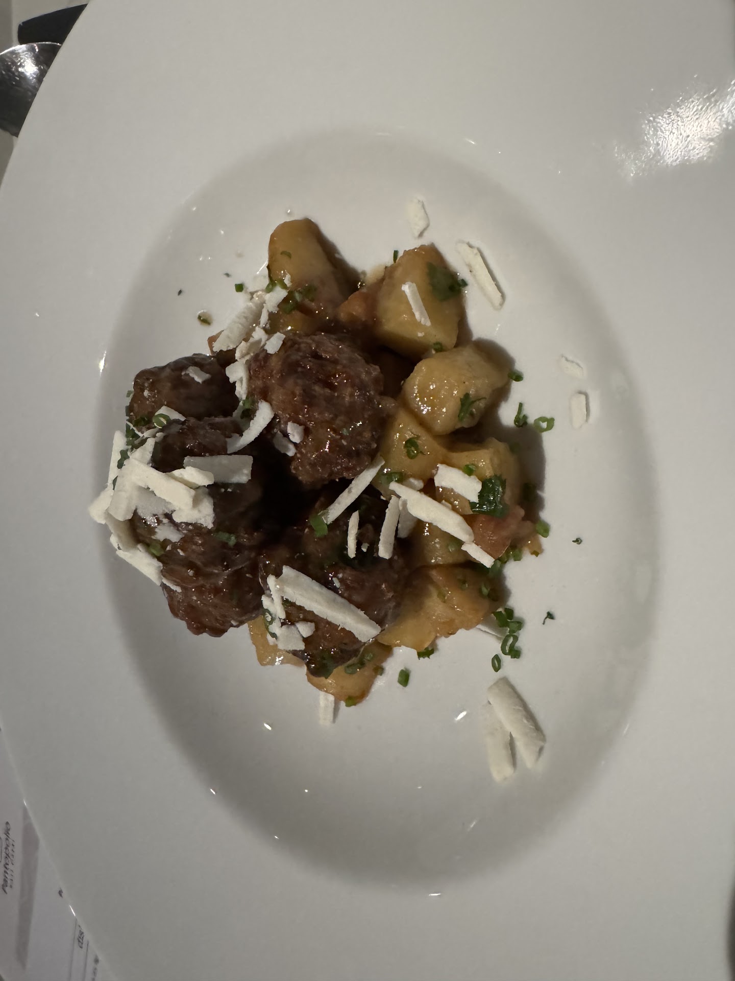 I also enjoyed the Skioufichta pasta with bacon, anari cheese, and sausage with leeks, which was a delightful blend of textures and flavors. The creamy cheese and perfectly cooked pasta were a match made in heaven.