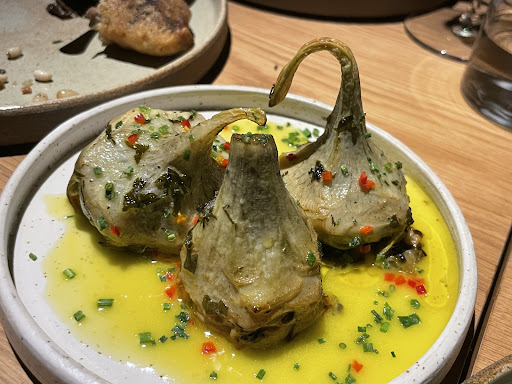 Read moreSuch a delightful establishment! The food, the people (bravo especially for that!) the vibe the cocktails the music!!! Five stars all the way! A must visit for Nicosia. We started with an amazing eggplant dip different from any other place and the most delicious EVER!!! Lovely tahini, chimichurri and carrot dips, to die for artichokes!!!, vibrant green pea salad with some kind of soft cheese (drooling) a bagel type bread (drooling again) and then main course was the catch of the day.. a huge fish freshly caught cooked just right with a bed of eggplant puree and green smoked wheat. Simple ingredients put together creating a light yet delicious main. And the desserts! We got the kataifi and yogurt with honey, and they both were fresh, light and exactly right to finish dinner.. We will b back as we hear they use mainly local seasonal produce and change the menu accordingly so must visit all year round (not to miss a thing!!) This is not your typical snobbish Nicosia restaurant… this is a cozy place you can visit even just for cocktails on the bar.. (If you are a mezetzis, you may ask them for a fish head…...