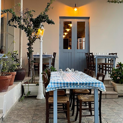 The seating outside on the yard is very nice. regarding food now that is different.portions are very small. pork souvlaki portion is just for 2 people (they should tell you this and not wait until they bring them on the table and it wont be enough for four). It is quite tasty though. Chicken souvlaki is not tasty at all and too salty. beef liver well cooked. They have a special dish called kaloirka which on essence are mince dumplings.they put so much butter you cant taste anything else.tyrokafteri is very good. Now regarding the service....they were asking continuously for us to order but when we did, it took forever for the food to arrive. We asked for something else three times before they brought it.thye did not know the drink menu and the had to go inside to ask if they had specific wine(retsina). if you don't know all of your menu, you should just bring is a standard drinks menu at the table for us to decide. price wise it is on the...