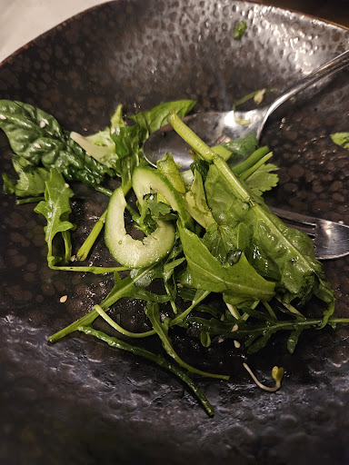 Very fresh, beautifully matched greens with a light sesame oil dressing. A lovely fusion dish and a perfect starter. I wouldn’t change anything about the flavor. My only small comment: the cucumber slices, with their seeds removed, although I understand the reason for this, looked a bit odd visually (almost like they were bitten off), but that might just be me!
