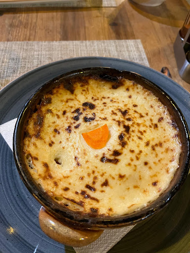 After ordering, we had to wait 30 minutes for the starter. Prior to the starter arriving, the waiter gave us a basket of dry, unappealing bread that looked like it could've been plucked from any supermarket shelf. When my starter did arrive, it was covered in mayonnaise, it looked like the kind of meal a 15 year old would buy from any old cheap food shop after school. Visibly dissatisfied, I was then offered an alternative, to which I said yes, I applaud the staff for their service here. However, it was basically just some oily, overly salty mushrooms on a square plate. Simply pitiful.