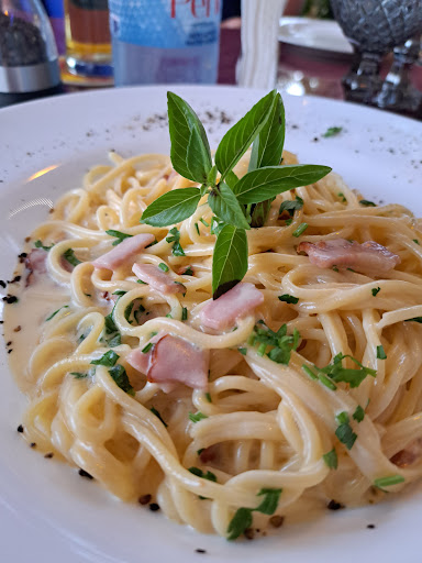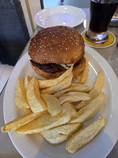 Lovely little restaurant off the road away from the harbour, family run restaurant and they made us feel very welcome, I think the lady's name was Maria, we arrived early 6pm no one in there, everyone eats later than we do which pretty much allows us to walk in anywhere. We started with a few starters I had the camembert and It is a camembert its more of camembert bites 4 to be exact which I was disappointed with but they were very nice, a bit pricey for what they are. We also had grilled halloumi 2 pieces to be exact which i felt was still overpriced for what we got also, garlic bread with cheese was amazing. We had a variety of meals. Burger was huge my brother couldn't finish it and that doesn't happen often burger was very tasty. Me and my wife had the gyros she loved it but I dont think the tzatiki is for me, meal was soft so overall it was good. My dad had the chicken curry and it was bar far for me the best meal out of us all. My daughter had the schnitzel which was greasy for her but cooked perfectly. The best thing about all the meals were the hand cooked fresh chips they were just like chippy chips back home, delicious. Dessert we had cheesecake which was nice, tiramisu was good and the creme bruleee was delicious. Overall I wouldn't say a bad experience it was definitely good. If I was to advise anyone what to have, garlic cheesy bread for starter curry for main and creme bruelee for dessert and your on a winner. Sorry I didnt get any pictures of the starters I was too excited and they was gone before...