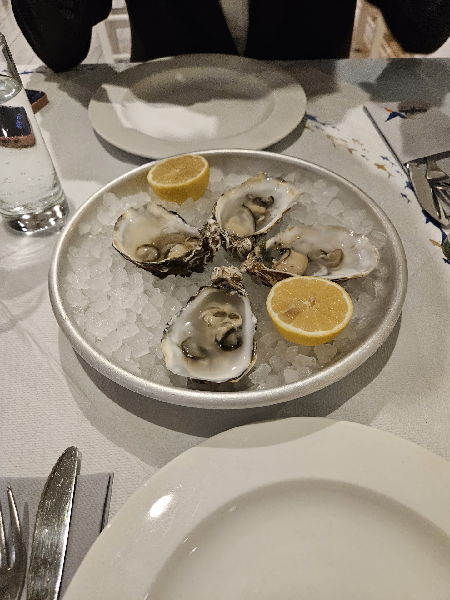 We started with Oysters (freshly made and great with Tabasco sauce-pairing). Next, we destroyed the Carpaccio and some Shrimps in Tomato sauce and went then to the hero of the day: Larry the Lobster with some pasta, which had been cooked nicely to be al-dente. We wrapped all of it up with their homemade Helva Ice Cream / Lava Cake mashup - perfectly sweet and tasty and a nice culmination of a good meal.
