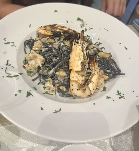 I ordered the seafood pasta, which included black pasta, two fresh prawns, and the rest was a frozen seafood mix â clearly not fresh. I forgot to ask in advance, but nowhere on the menu was this mentioned. When I raised the issue, the manager said that serving fresh seafood would cost âŹ50 â which confirms that (all ?) their seafood dishes are made with frozen ingredients.