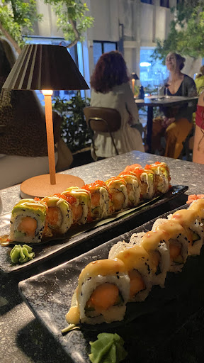 Great ambience with music (live DJ on some days) and good food. We had an early dinner at 6 PM during off-season and the restaurant was completely empty. We opted to sit inside as it was a bit chilly outside but by 7 PM there were quite a few outside tables already full. As vegetarians, it was nice to see a few veg appetizers and sushi rolls. We ordered 3 of the veg sushi rolls, baos, and the spring rolls. The spring rolls were really good while the veg bao was okay. You get 2 baos per order and they felt a bit flavorless. The sushi rolls were good but the one w/ seaweed on top could have done w/ a bit less seaweed. The taste of seaweed was overwhelming and took away from the actual taste of the sushi roll. We took the seaweed off which allowed us to enjoy the taste of the rolls.