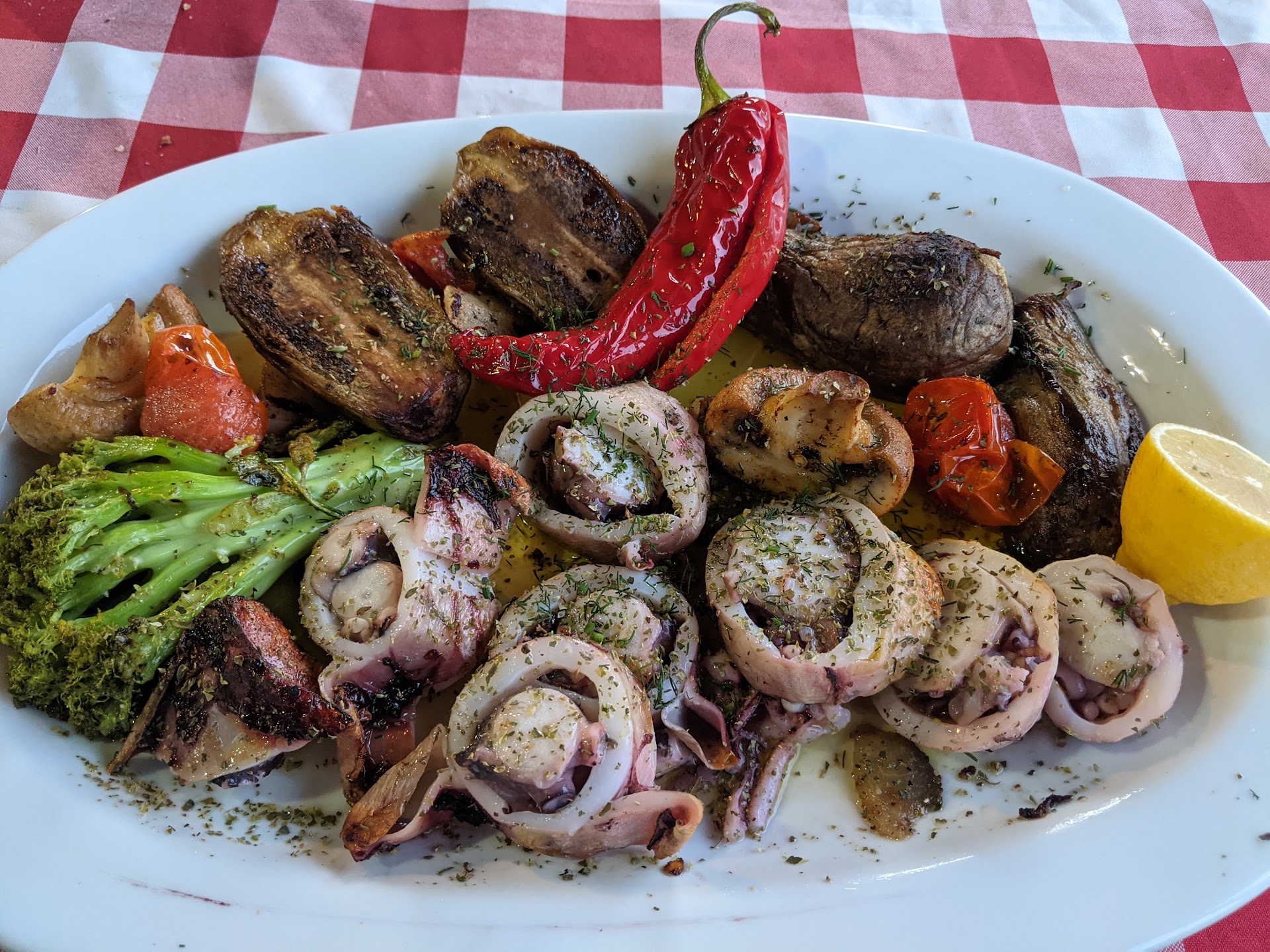 Read moreBased on the reviews, our expectations were high, but the experience fell short. Due to the adjacent table smoking, we had to change our seats twice, and the waiter was unable to assist us. There was some confusion with the menu; the food displayed in pictures near the entrance was not available. We ordered a meat platter and intended to order a seafood platter, but it wasn't on the menu, and the waiter didn't understand our request. Consequently, we settled for squid stuffed with octopus. We also ordered lamb and a village salad. The chicken in the meat platter contained bones, which shouldn't have been the case. The squid stuffed with octopus was tasteless and overly chewy. For the price, the quality was very disappointing. Additionally, the loud conversations of Russian-speaking customers at the neighboring table made it difficult for us to talk. Unfortunately, we cannot recommend this place due to the poor service and subpar...