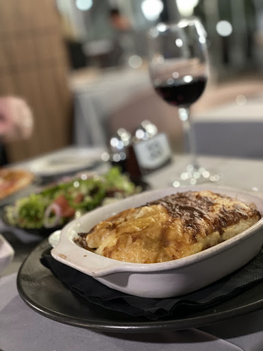 Read moreStumbled across this restaurant a bit later than we would normally eat around 9pm. I was slightly put off by all the signs outside, but the decor was sophisticated with pristine white table clothes set up nicely with glasses etc. The waiter was so welcoming! He gave us a table to sit on whilst we waited for a table outside. He made light chit chat and ensured that we new that we had not been forgotten. After just 5 minutes we were seated at a lovely table for two and given the menus. A lovely waitress took our order and checked with the kitchen before confirming they had moussaka. The staff were attentive at topping up our wines. The food arrived and the portions were generous. The moussaka was beautifully creamy and melted in the mouth. The moussaka was served with a simple salad that the waiter was excited to serve with a fresh lemon juice and olive oil dressing that really complimented the salad without an overpowering flavour. My husbands pizza was just as you would want a pizza to be. Crispy, good quality ingredients and they have a delicious chilli sauce on request that is made in house. The lady who came to ask us about the food was delighted to hear that we had enjoyed their meal as her husband was the chef. Gluten free options also...