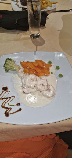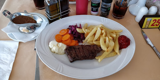 This place has good friendly service. We visited at 6pm on a weekday and were the only customers there until others came. We were brought a basket with warm fresh roles of bread and butter. We ordered starters and mains which came out promptly. The food is of a good quality. I had the prawn cocktail to start off with. This was a modest portion and was very tasty. I then had the sirloin steak with Diane sauce. I asked for it to be medium-rare and so it arrived this way. The cut of meat was not very tender, however I have had a lot worse at other establishments and it was not too chewy. Once we had asked for the bill we were brought two complimentary shots of Cypriot sweet red wine. This restaurant is definately worth a try and you should not be disappointed. Five stars mainly for the customer service and complimentary bread and shots. Four stars for the food and price. Two Pepsi's, two starters and two mains costed...