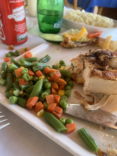 They got potatos instead of rice and the vegetables were the typical frozen peas and carrots. The rice (after they forgot it first) was...