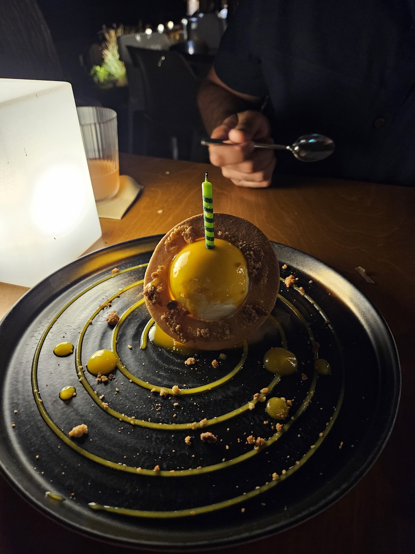 We informed the restaurant in advance that we were celebrating our anniversary and had hoped for some thoughtful decorations on the table. Unfortunately, our expectations were not met in this regard. Despite this small disappointment, we did appreciate the gesture of a candle on our dessert. However, we had expected a little more personalization, such as a "happy anniversary" message written with the sauce or a small touch that would have made the experience more special.