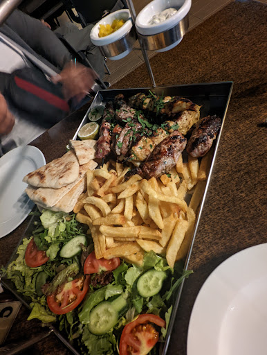 This is a taverna style restaurant and pub with large screens for viewing sports programmes and a music system. The staff were welcoming and pleasant and quickly served drinks and brought the menus. There is a good comprehensive range of starters, finger food, sandwiches as well as burgers, fish and chips and cooked meats such as grilled pork and salmon all served with salad and chips. The dishes we chose were cooked to order and were tasty and excellent. These can all be ordered for takeaway service. There is a very well stocked bar with an extensive range of spirits, beer, wines and cocktails on offer as well as soft drinks and coffees and tea. Children are made very welcome. There's limited parking outside but there is a good community car park a short walk away. Access is via three small steps which could be awkward for wheelchair users who would...