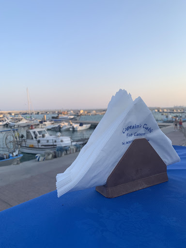 Read moreVibe: Relaxed , Ambience: 2/5, Price:€€€, Service: 3/5 ▫️Menu: when you open a menu at a fish tavern and it has a steak option; you know the food it’s not gonna be good. ▫️Salad and dips: Salad was fresh-ish but didn’t have enough dressing, the tahini was ok but the taramas dip was store bought and you could tell by the colour and taste. ▫️Fried calamari: as simple as this dish is it can go wrong very easily; and it did. The dough was falling off the calamari and the calamari it self felt so heavy and kept me up all night with indigestion. ▫️ Grilled cuttlefish: or should I say burned cuttlefish? I fed my portion to the cats. We actually sent this dish back and asked for the chef to try it. It was awful; don’t know if it wasn’t fresh and the chef over cooked it in order to overshadow that fact but it was one of the worst dishes I ever had. ▫️Red mullet: Was edible but not good. You could tell it wasn’t fresh and again the cats got to eat most of it. Overall: 2/5 Would definitely never revisit. Captains table has one of the most amazing views at sunset yet that’s the only thing it has. They didn’t charge us for the cuttlefish and our bill was €51 with a coke and a half pint beer. If they had charged us the bill would be €67 and with nearly €30per person you can go to any other fish restaurant and have an amazing meal. It’s overpriced for the quality and the service isn’t...