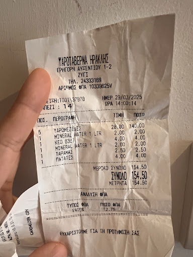 We thought the restaurant would provide additional appetizers for free, considering we ordered five full meze. However, instead of accommodating this, they charged an extra €2.5. While the amount is small, it left a bad impression.
