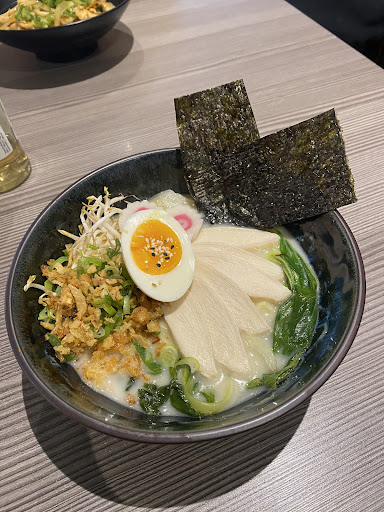 Read morePříjemné prostředí, velice mile mě překvapilo že dělají i hot pot nebo bbq které určitě někdy přijdeme zkusit. Zatím jsme zde uchutnali pouze sushi které bylo fakt dobré až na wasabi které bylo pouze obarvený klasický křen ( jak je tomu bohužel v 80% restauracích/bistrech). Ramen nebyl špatný, vzhledově byl fakt vymazlený nicméně chuťově už to tak slavné nebylo, nudle dobré ale vývar a zbytek byl uplně bez chuti což bylo dost velké zklamání a už si ho zde nedam. Udon mi osobně chutnal, sice teriyaki viděl tak max v košíku při nakupování ale dobrý, dle přítele bez nějaké výraznější chuti a takové průměrné. Obsluha ok, nenadchla ani neurazila. To že se uvnitř může kouřit iqos je fakt hnus a dávam za to hvězdičku dolu, je takový problém chodit s tim ven? Jako plus je že mají v nabídce japonské pivo nebo různé druhy limonád taktéž z japonska. Mimochodem nedá se zde platit kartou, což vidim jako člověk co u sebe netahá hotovost jako dost nepohodlné, alespoň že na druhé straně náměstí je...