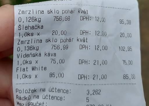 Read morePro nás velmi milé překvapení. Káva od karlovarských City Roasters by určitě zasloužila větší péči, ale výsledek nebyl vůbec špatný. Vyzkoušeli jsme i zmrzlinu, která byla také dobrá. Na to, že jsme od tohoto místa na první pohled nečekali nic světoborného, jsme odcházeli spokojení. Normálně bych asi dala spíš 4*, protože to své mouchy určitě má, např. platby pouze v hotovosti, ale v rámci lokality je to určitě nadstandard. Zároveň bych chtěla podpořit majitele v tom co dělají, protože když si tu v recenzích čtu ty haty ohledně latte, tak je mi z toho smutno. S takovou klientelou se holt dobrého hodnocení člověk nedočká. Moje osobní rada pro vás je, až si zase nějaký host objedná laté, mějte to na salámu, jak píše jeden vaš recenzent, a normálně mu nalijte sklenici mléka, ono je to...