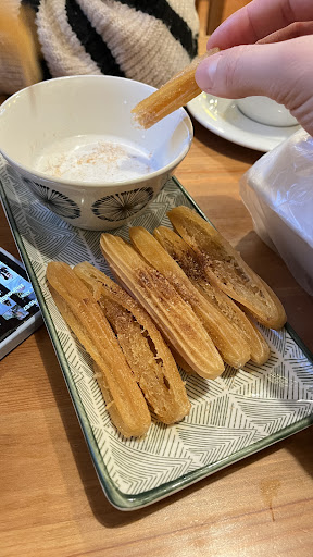 Dezert: Churros, bylo jedním slovem hrozné… V oleji osmažené spálené křupavé těsto, které pouze trochu posypaly cukrem. S kombinaci mléka jste jedli vlastně nijak ochucené, přesmažené těsto…