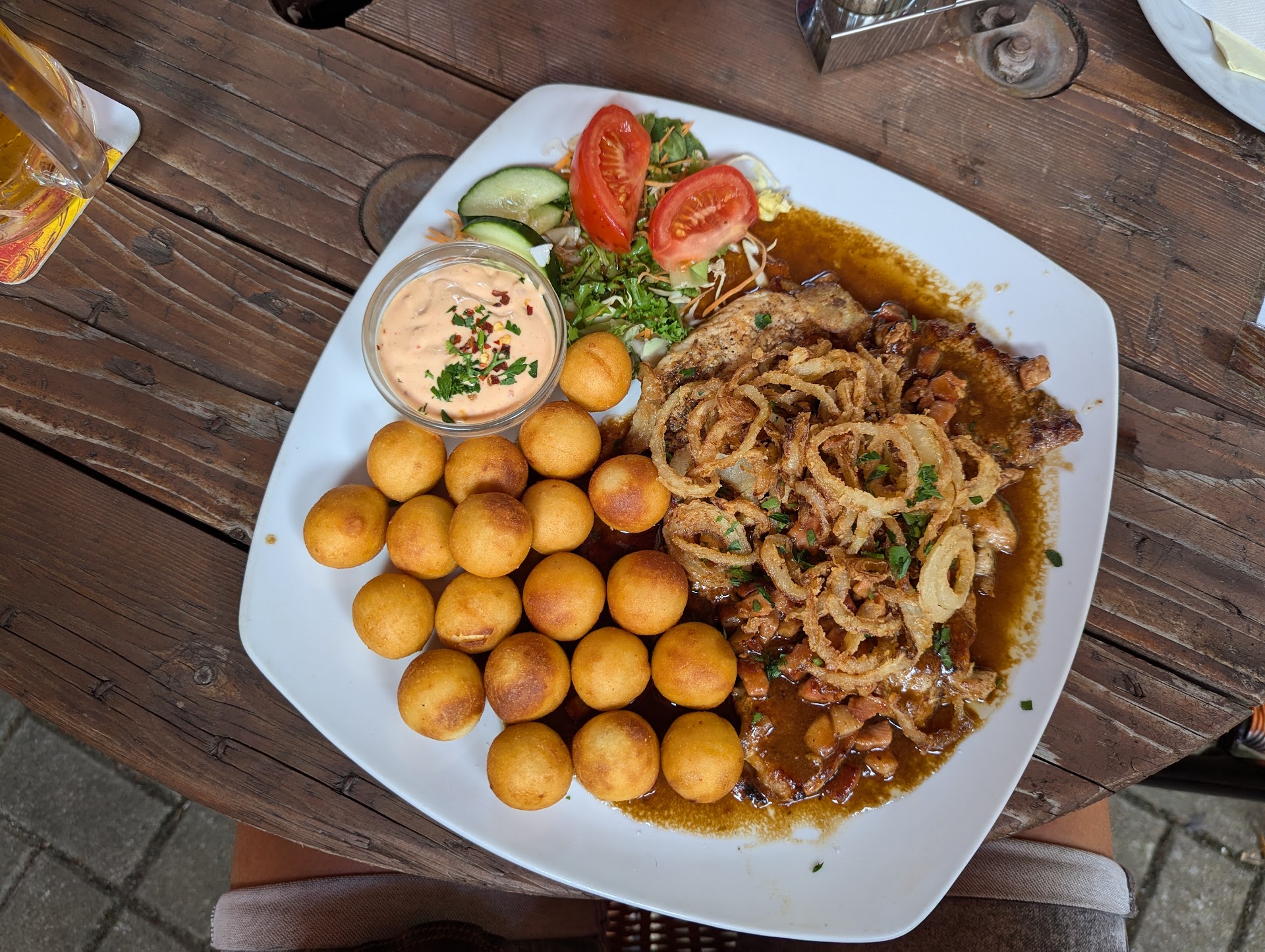 Hier wird Service groß geschrieben! Die Karte ist leider komplett in Tschechisch, aber der Chef persönlich hat sich zu uns gesetzt und uns alles auf Deutsch erklärt und auch Empfehlungen geben. Hatte ich in der Form auch noch nicht. War aber sehr coole und ein mega Service. Unseren kleine Hundin hatten wir auch dabei. Sie hat auch gleich Wasser bekommen. Wir hatten noch das Glück an einer sehr schönen Lokation, hier auch Live Musik zu bekommen. Das restliche Personal ist auch sehr nett und zuvorkommend. Das Essen war mega lecker und für diese gigantischen Portionen extrem preiswert. Auf extra Wünsche wurde hier auch eingegangen. Dieser Ort ist ein echter Geheimtipp!! Immer...