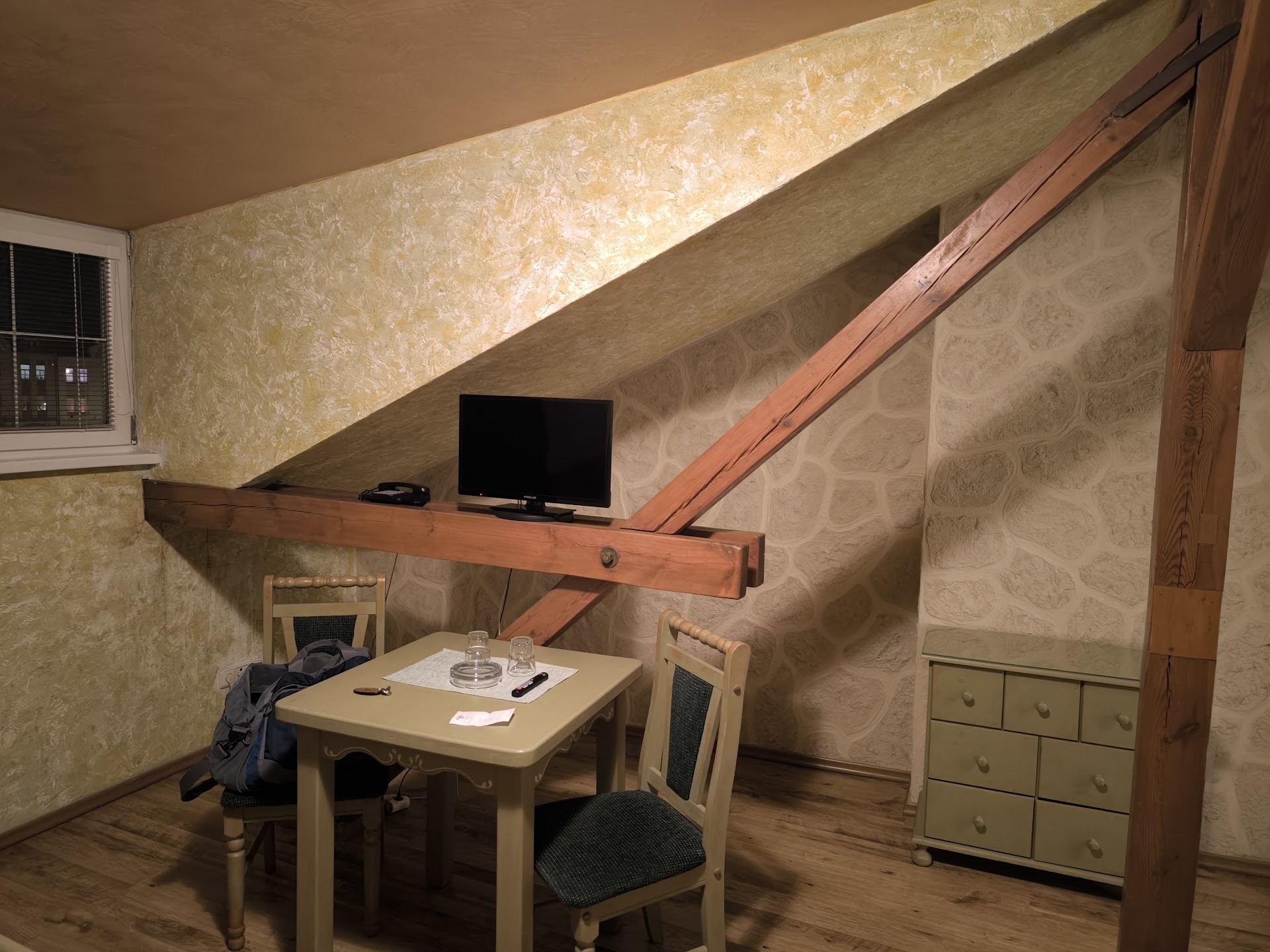 Das Essen war super. Allerdings gibt es sehr viele negative Punkte. Wir waren vom 30ten auf 01.01.18 dort. Die zimmer sind ok aber die Betten sind sehr laut beim bewegen, die Dusche ist schrecklich, zwar sauber aber der Brausenkopf hat kein druck und man muss ihn abnehmen um ans wasser zu kommen. Die Toilette befindet sich für alle im hausflur und wurde in 2 tagen auch nicht wirklich gesäubert. Die wände sind sehr dünn und man hört alles egal ob neben an oder oben drüber. Zum Silvesterabend... Man musste 40 Euro extra zahlen dafür, was auch ok wäre wenn es das versprochene gehalten hätte. Das Essen war sehr gut, die Bedienung sehr sehr unfreundlich und auch überfordert. Der DJ die reinste Katastrophe. Es sollte eine oldisnight sein, stattdessen wird deutschrapp gespielt. (kommt gut bei altersdurschnitt von 40) wir selbst etwas jünger aber auch wir verstehen darunter was anderes. Nach 10 spielt er 1 std Helene Fischer was keiner mehr hören konnte. Dannach immer wieder mal rapp. Irgendwann haben wir bemerkt das er keine Ahnung hat was Oldies oder deutsche Musik ist und haben eine playlist erstellt die er komplett abspielte und für die Zeit auch mal stimmung aufkam. Allerdings wurde die Musik auch immer lauter und man konnte sich nicht mehr unterhalten. Um halb 1 gab es noch ein Gulasch und dannach sind sehr viele gegangen da nur noch Tschechiches gespielt wurde. Wir wollten auch bezahlen und mussten der Kellnerin 3 mal in 30 min sagen das wir endlich zahlen wollen. Alles in allem... Zum essen und trinken kann man hin gehen aber zum schlafen und Silvester feiern war ich das erste und letzte mal dort. Schade, da ich am ersten Abend von dem Personal sehr zufrieden war was super freundlich war. Nur leider sind nicht viele für den...