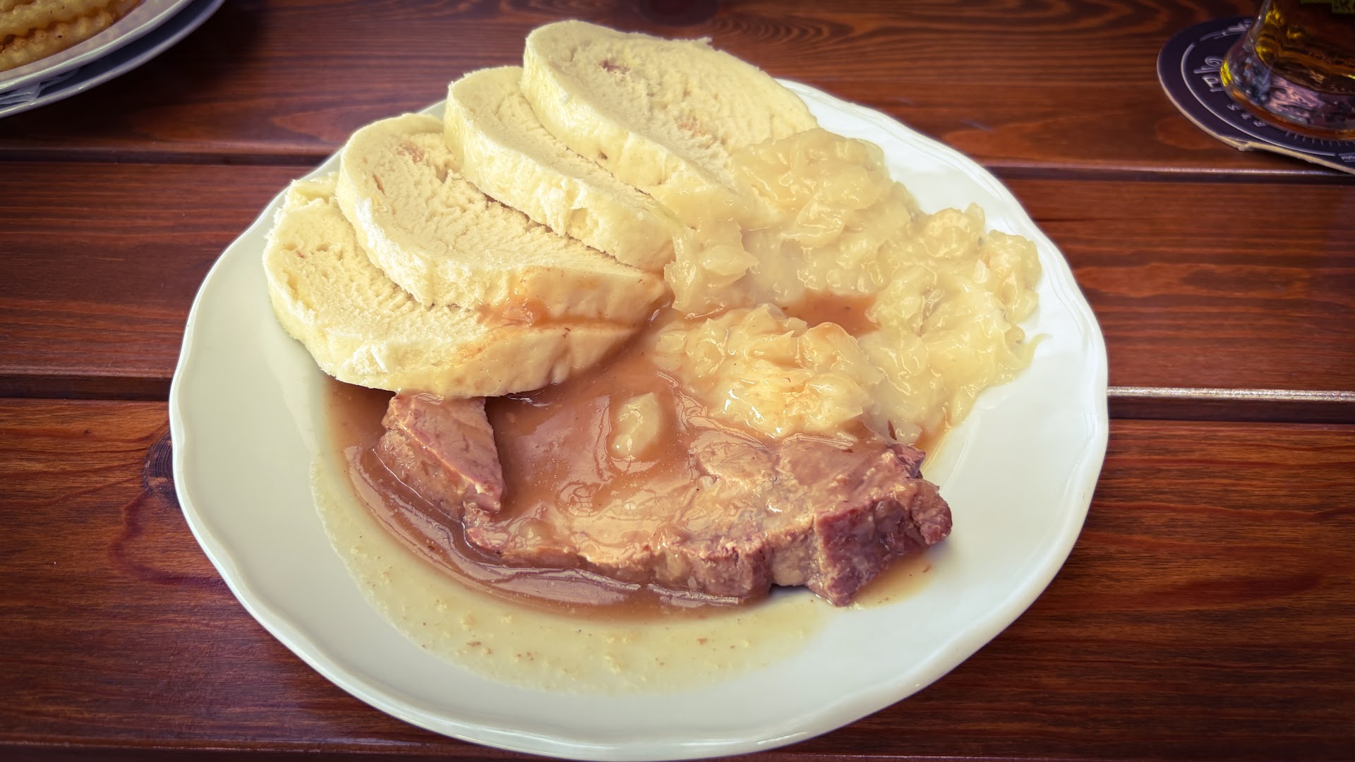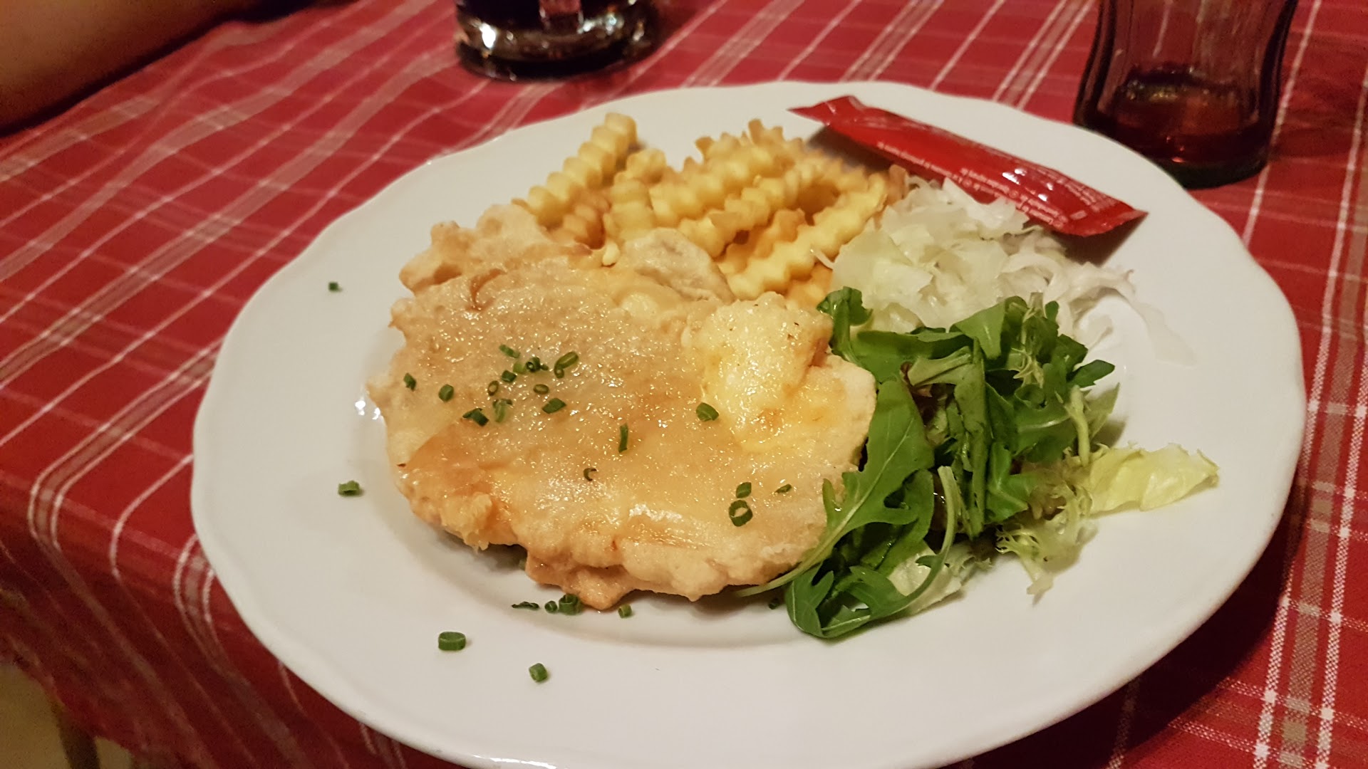 We ordered the trout and breaded schnitzel, and a few side dishes, which were good value for money. The communication with the staff could be better. Since we don't speak Czech, and the staff didn't speak much English, we settled for German. Unfortunately, our waitress' German left much to be desired. My wife indicated that she didn't have a huge appetite, thus hoping she wouldn't get a large trout. The restaurant charges a surplus for every 10 gram over the standard 200 gram. Let's just say she got a big fish, we discovered how much it was over in terms of weight upon seeing the bill. One: it's a waste of food which is a pity, two: if this was the smallest fish (which I doubt) the staff could've let us know. Upon settling the bill, the waitress asked (a bit too eager IMHO)if we wanted to pay in euro. If you can avoid in it the Czech Republic you should, exchange rates at restaurants aren't usually in the favour...
