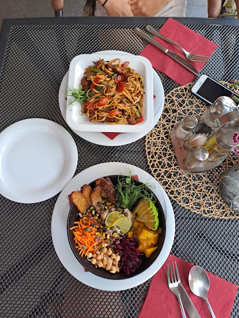 Read moreCeny sice vyšší ale za tu pochoutku to rozhodně stojí! Opravdu fantastická chuť. (Měli jsme Buddha bowl s černou rýží a udon nudle s restovanou zeleninou) Bohužel jsme byli strasně nespokojeni s obsluhou. I přes to, že bylo minimální vytížení nám obsluha nepřinesla i po několika minutách čekání menu a musela jsem pro něj dojít sama. Další dlouhá chvíle nastala při vyčkávání na číšnici, až si přijde zapsat objednávku. Jídlo přinesené za 20minut. Chtěli jsme si ještě dát palačinky, ale opět jsme strávili dlouhou chvíli nad dojedenými talíři, než za námi paní přišla a mohli si JEDNU porci objednat. Řekla jsem, že bych si přála ty palačinky a paní mi odvětila, že je jen jedna, ale že nám ale klidně udělá dvě. No nečekala jsem, že nám prostě přinese dvakrát tu klasickou porci, vyznělo to totiž, že nám tu jednu rozdělí. A na závěr jsme zase neuvěřitelně dlouho čekali, než jsme mohli zaplatit. Připomínám, že kromě nás v restauraci byly jen 2 další skupiny hostů. Také by se mohlo dbát více na hygienu - objevili jsme v jídle 2 vlasy (: