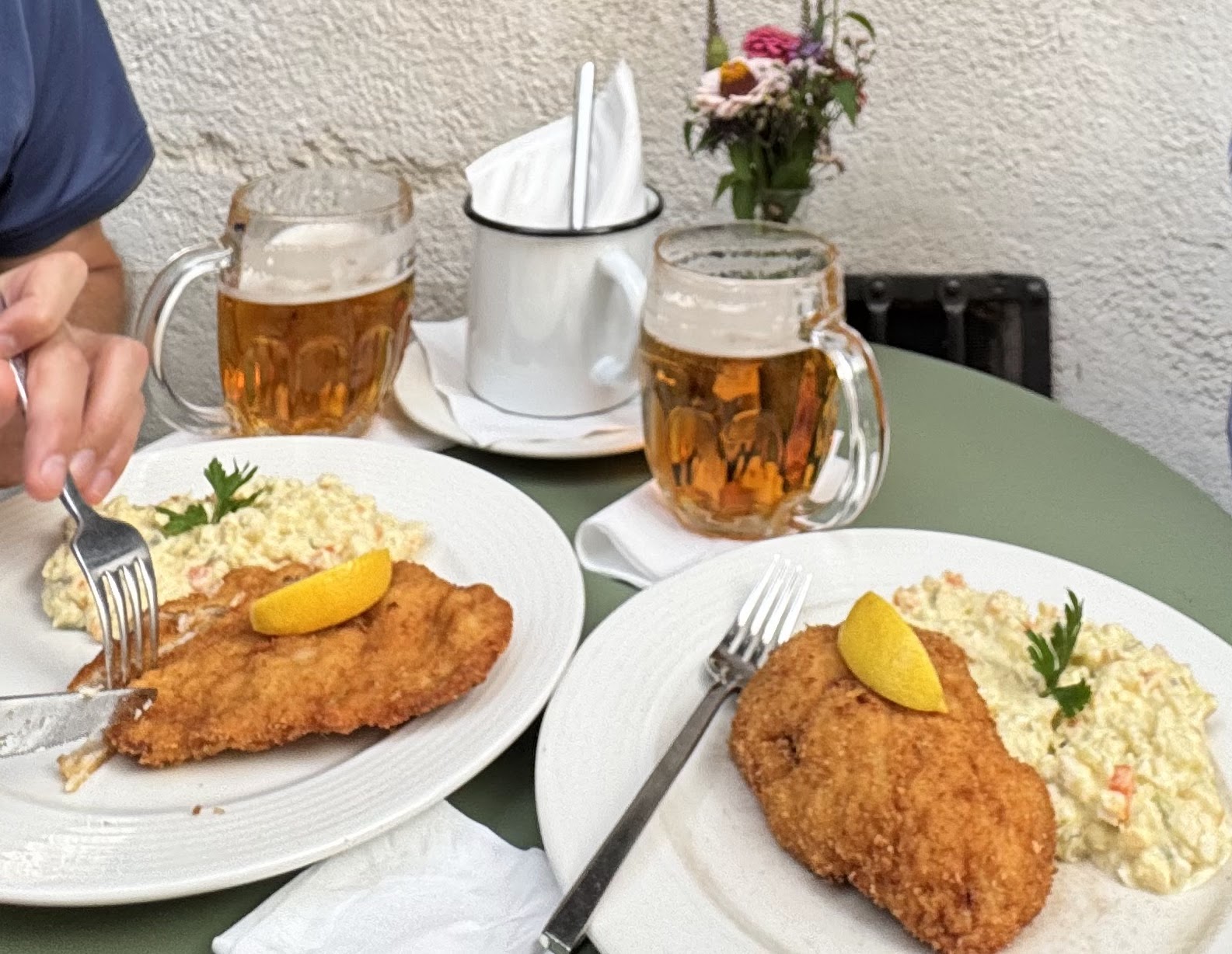 On a busy Saturday evening, when every seat inside was taken, we ended up on the terrace and partly on the castle steps. Judging by the tourists’ cameras, our schnitzels became part of at least 5,000 vacation photos. And rightly so: this pork schnitzel with traditional Czech potato salad quickly climbed into our “top favorites” of the trip. We ordered five portions and not a single crumb was left.