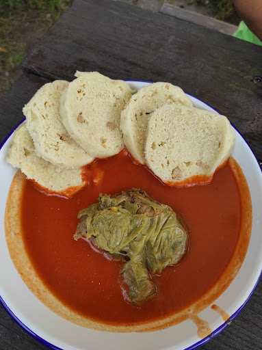 18/7/21 letos musím odebrat hvězdu, výpečky s málo zelím + hodně tlustého masa, rozvařený paprikový lusk, letos zvítězili plněné bramborové knedlíky s uzeným, sladké knedlíky OK, cappuccino a...