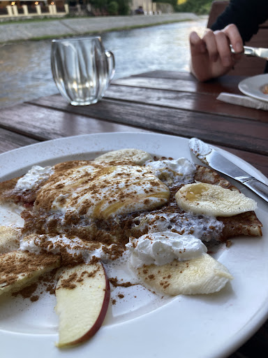 The good: Good variety of interesting menu options! There were many things I wanted to try. Very nice location just off the main street, on the river. Shady garden seating. Was there with two friends, they both had salads that they said were good. Pretty good prices considering the location. Friendly staff! A novelty sometimes.