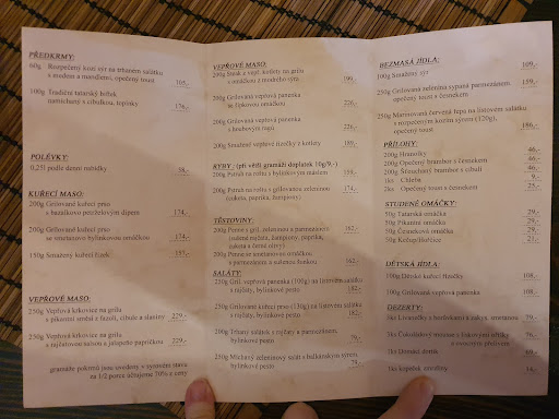 Read moreOne of the best restaurants i have eaten in the last 16 years i have been visiting czech republic and moravia. The steak was grilled to perfection and the garnish of beans was full of flavour. The hranolky was perfectly fried, not to soft not too hard. My wife had porc with prumesauce wich was also an explosion of tastes. As desert we shared the dessert of the day wich was a red velvet cake. Again if it is allowed to lick of the plate i would. Beer they had non filtered gambrinus wich i like a lot even if its a main stream beer. I would have given 6 stars but google wont let me do that. I recommend this restaurant and im gonna come back whenever...