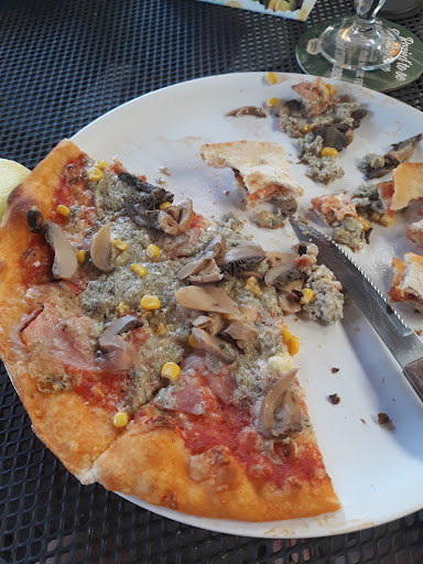 Beer garden was a pleasent area and decent beer. Waitress relatively friendly. Pizzas without taste, no herbs, tasteless cheese, average base, over compensated by adding more toppings than ive ever seen on any pizza. Seemed like they had one small oven as all four pizzas came out at different times. Slow service for a more than half empty...