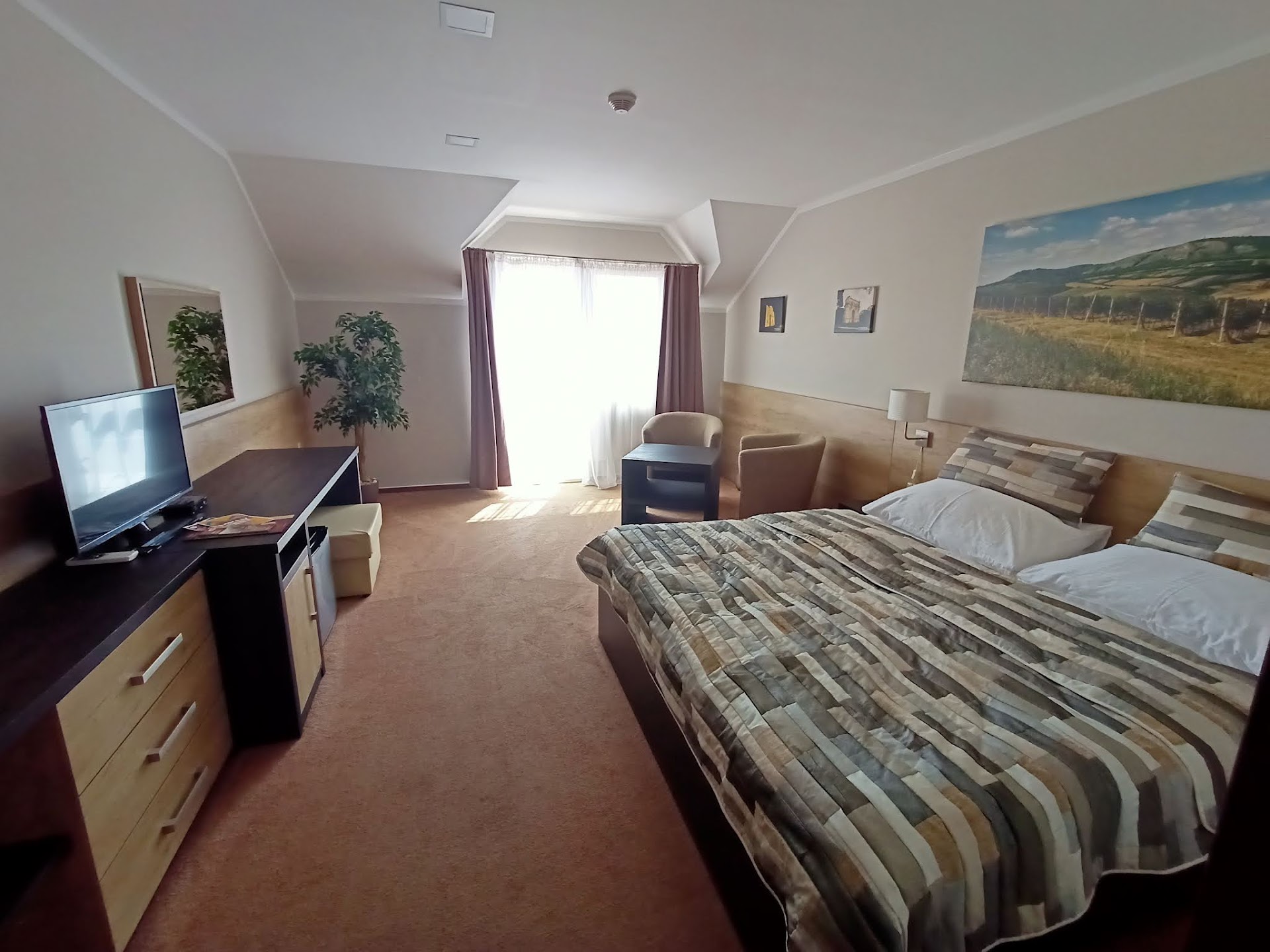 Read moreThe place is clean and the room was spacious. The breakfast was OK although I would expect more. The food in the restaurant was quite nice although small choice on the menu. The draft Pilsner Urquell was well tapped. The location is beautiful and the staff were mostly friendly and welcoming. If you are looking for a venue for a hen party, stag do or corporate event this might be the place for you. Especially if you prefer a shiny veneer over a quality and substance.||This place will be ideal for a lot of people but if i knew what this place was I would not have booked it. I expected a relaxing stay in a vineyard with quality wine and food. The reality is the standard is not that high and I don't think any wine is produced on site. This is more like "DisneyMoravia". There is a car park for about 200 cars and seating in the restaurant for 250 people. The shop has loads of wine piled high but I suspect it is bought from operational vineyards. There is also a "retro" disco that goes on until 4 or 5am. If you are really lucky then your neighbours might continue the party on the terrace after the disco closes and thoughtfully wake you and your family up at the crack of dawn with shouting and loud music. If you are into that sort of thing you might rate this an 8+. If you are looking for somewhere to stay with family, or just want a slice of luxury then I would suggest looking elsewhere, maybe somewhere they actually produce wine! I didn't realise a place like this existing in the Moravia wine region and I will be more careful...