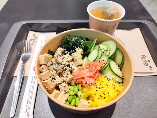 I usually go to Forkys at Jakubske Namesti, but since a branch of this cafe also opened in Vankovka, I decided to pop in and compare the results. In my mind, there is still room for improvement in the cafe. There were too many cucumbers in the sushi bowl in my opinion, but that's the only issue regarding the food. There are no complaints about the work of the staff; they were polite and answered in English. My order was processed quite quickly. In general, I must admit that the cafe in Jakubské Namesti is more comfortable than in Vankovka, but I understand that it is difficult to organize the same level of comfort in the food court. It would be nicer if food and drinks were served in ceramic rather than disposable dishes. Overall, I’m glad that in Vankovka there is a small vegan cafe where you can order lunch...