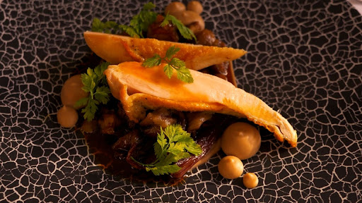 Read morePoprvé jsme zavítali do chválené restaurace Pavillon, kde jsme jako správní nenažranci😋 požádali o degustační menu spojené s oslavou dne všech zamilovaných. ❤️ Velice příjemný číšník, který nás uvedl bez čekání k nachystanému stolu ( uklizení nepotřebných příborů a nabídnutí karafy vody před samotným výběrem samozřejmostí ) nám následně k vybranému valentýnskému menu umýchal perfektní drink s ginem, za který by se nestyděl kdejaký bar ). První předkrm 🥳( jj bylo jich víc (((-:) se nesl ve znamení úžasně jemného carpaccia z vyzrálé roštěné, doplněné liškami, oříšky, sýrem pecorino a doplněné oproti standartním rukolám a podobně najemno nakrájenému fenyklu. Wow. Druhý, tentokrát teplý předkrm, ústřice smažené v tempuře (pro běžného občana čti v těstíčku 😁), neskutečný zážitek, kdy člověk očekává dnes už na různých akcích častější polykání něčeho slaného, mazlavého a zalitého citronem a dostane něco jak esteticky, tak chuťově už dostatečně vykřikujícího, že po tomhle v knihách mnohými popisovaném afrodiziaku, doma něco bude 🥰😁. Jako fakt člověk by to nejradši do sebe hrnul, jak stripsy v kfc, jen chuťově jak z jiného světa. Hurá, dostáváme se k polévce, což je mnohými národy bráno jako předkrm, takže následuje předkrm no. 3 (((-: . Humr a krevety. Člověk si řekne, sakra to bude klepítko vařené s bandou neoloupaných krevet, jak češi často zažívali v letech po čisté revoluci nebo dodnes často zažívají s přízviskem rio mare ((-: . No tak bude to překvapivé, ale zřejmě v restauraci Pavillon se s tímhle nechtěli smířit a nabídli neskutečný vývar z humra ( bez klepet 😅) a k tomu výborně dochucený tataráček z nakrájených (a oloupaných) krevet na “černé sušence” (takovej příjemnej odlehčenej “krekr”). Následoval zmrzlinový sorbet z limetek a liči, který velice příjemný číšník uvedl jako mezikus ( předkrm no. 4🥳) na neutralizování chuťových pohárků, což tedy sakra byl 😅 ( kyselejší, ale přesně co před hlavním jídlem potřebujete ).