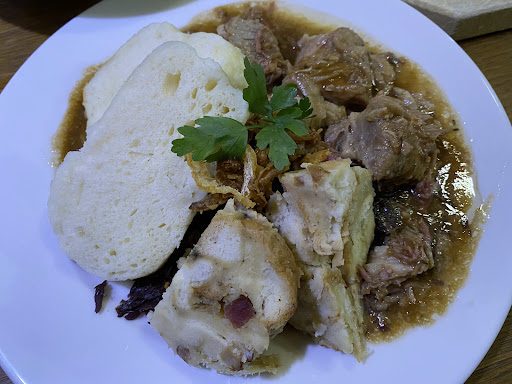 My fiancée and I got to have dinner at this traditional Czech restaurant a few days ago. Unfortunately the place didn't live up to expectations; to say the least. The food was OK; traditional Czech cuisine is on the horizon. Good. That's the service in the restaurant that left a lot to be desired: No one speaks English... I mean it... it is nearly impossible to communicate or to make a complaint about anything. Still water was ordered, sparkling water arrived. Complaining was completely useless due to their lack of command of English. Our main courses were brought out a few minutes after our starters / beer snacks were served. The waitress realized the issue and took the main courses back. We had to wait a long time before our main courses were served again, a second time. We decided not to leave a tip (considering the above) and my fiancée touched the 0% tip button on the waiter's terminal. The male waiter (bald, lots of tattoes) then got extremely furious and rude; he pushed my fiancée's hand aggressively off the terminal!! We got shocked! Then, he didn't even say goodbye, he just stormed off as soon as the payment was made! Is this service in your book? Really? We were extremely...