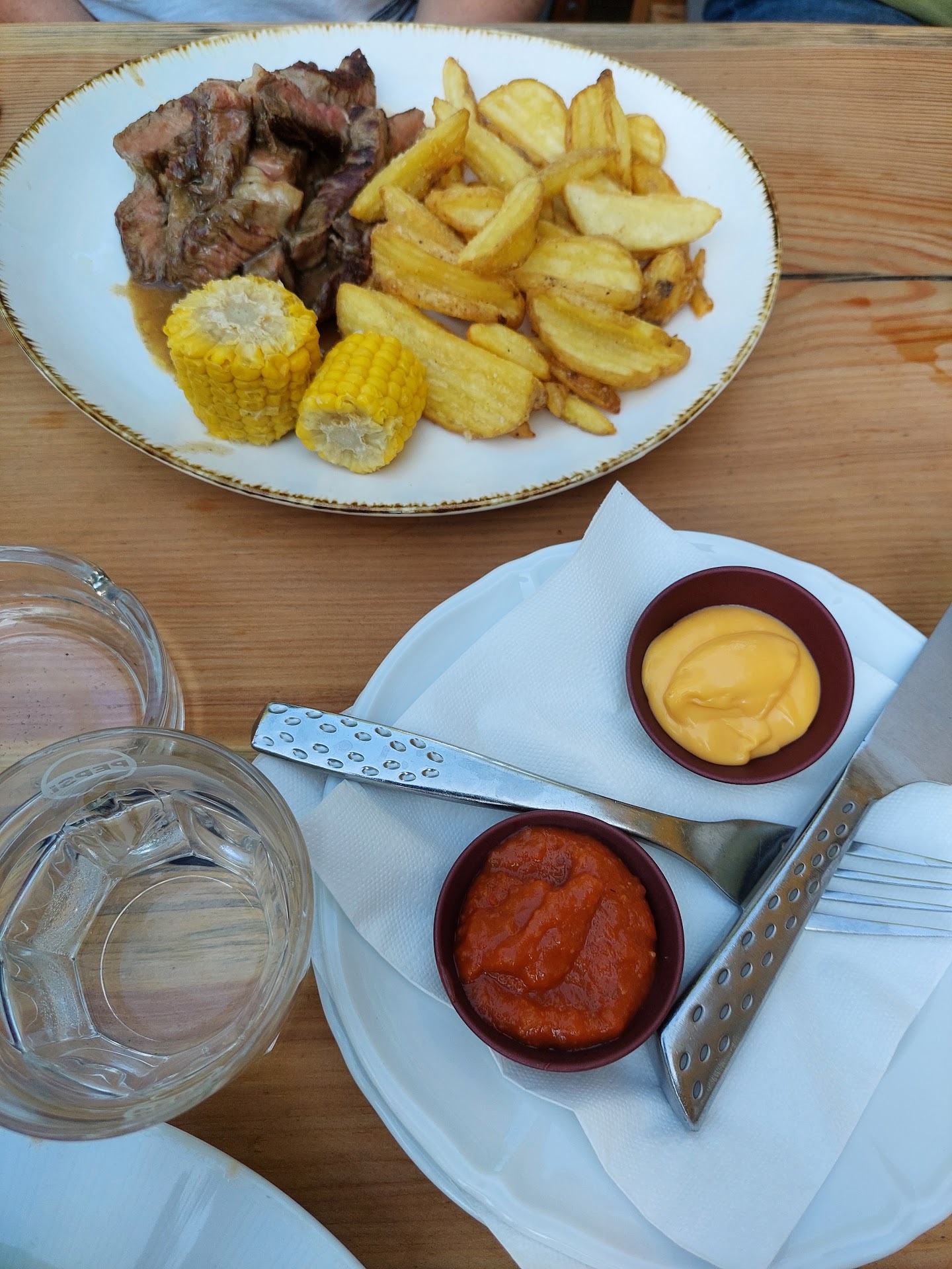 (DE) Guten Tag . Ich möchte eine Bewertung für das Restaurant hinterlassen. Unsere Familie hat im Voraus einen Tisch reserviert. Wir sind am Samstag pünktlich angekommen. Zuerst bestellten wir drei Bier, es war köstlich, aber seien Sie darauf vorbereitet, dass ein Viertel des Glases Schaum ist. Als nächstes bestellten wir Wildbret. ACHTUNG, wir mussten eine Stunde auf unsere Bestellung warten! Zu meiner Bemerkung sagten sie mehrmals, dass es viele Leute gab. Griechischer Salat, wir haben auch eine Stunde gewartet. Ich glaube, es ist sehr lang. Dann wurde uns das Geschirr gebracht. Das Wild war trocken und verkocht. Die Sauce war sauer und verbrannt. Sie können Foto sehen. Die Sauce sieht darauf schwarz aus. Ein Gericht war ein Ribeye-Steak, das viele Adern hatte. In der Steaksauce war ein Haar. Wir haben es ersetzen lassen. Außerdem möchte ich sagen, dass das Warten den Geschmack der Gerichte nicht wert war. Eine Stunde ist mir zu lang.