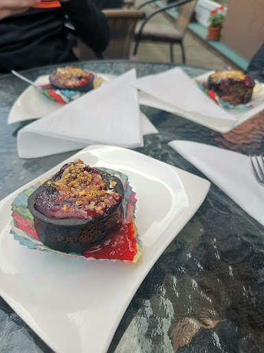 Die Speisen sind alle Vegan und mit viel Liebe hergestellt. Wir hatten 3 kleine und 2 größere Kuchenstücke, welche hervorragend geschmeckt haben. Es gab eine Auswahl kalter und warmer Speisen, sehr kreativ und nicht nur die übliche Auswahl. 5 von 5 Sternen (eher sogar darüber hinaus)