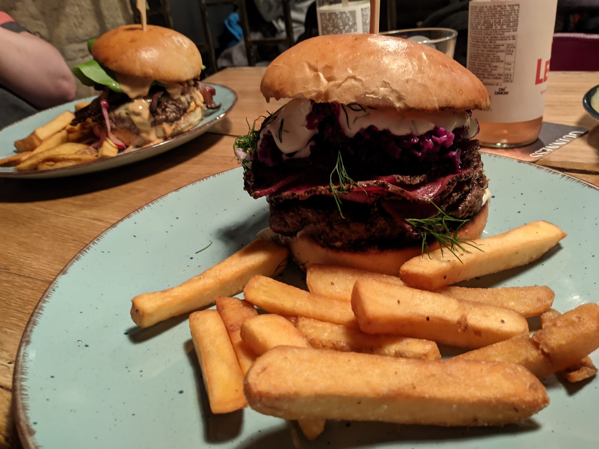 Nakonec jídlo, nedokázali jsme se rozhodnout mezi burgerem a tacos, tak jsme zkusili obojí. Chuťově všechno naprostý luxus a až nad (minimálně moje) očekávání! Nic suchýho, nic bez chuti, všechno fakt dobrý a porce tak akorát (a po burgeru a 1ks taco jsem byl rád, že jsem zvládnul odejít :))