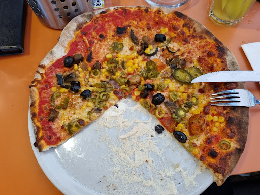 The pizzas were pretty good, edges a bit burnt, but the menu online isn't the same as the one they give you. Atleast for some pizzas so be careful with that. Another downside is that i ordered a vegetarian pizza and asked to add pepperoni. The pepperoni was nowhere to be seen. They chaged us 1.05 euro (25 czk) for it whoch would've been okay if they actually added the pepperoni.