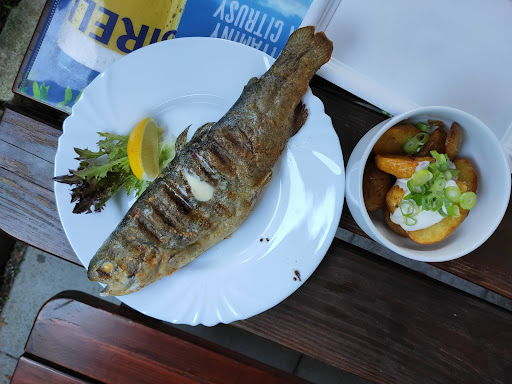Read moreRybářská bašta nabízí grilované sladkovodní ryby; pstruha, kapra, candáta... Výhodou je vlastní malý rybníček s klecí, odkud zřejmě čerstvé ryby pochází. Okolí je hezky upraveno, nechybí dětské hrací prvky. Terasa i venkovní část jsou vybaveny dřevěnými stoly a lavicemi, bohužel bez opěradel, takže delší sezení není pohodlné. Kromě nabídky ryb je možno objednat i ohřáté uzené maso, to však zřejmě z domácí produkce nepochází. Podnik lze doporučit především...