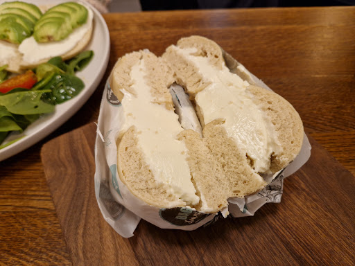 Read moreWill start with the good - the service is great. The staff is very nice and friendly, the kitchen is very fast, the prices are ok. The place design is fun. The food is horrible. We got 2 bagels a ceasar and salmon. Both so dry it wasn’t easy to chew, the bread was stale. There was maybe 1 table spoon cream cheese, again very dry. I will reiterate once more - the bagels are so dry we had to take a break from chewing them. Its just not good. Caesar bagel had a tomato inside, and salmon one had mozzarella sticks - both very questionable culinary choice and did not taste good. The coleslaw is criminally bad. Big chunks on cabbage with mayonnaise. That’s it. No carrot, no mustard, no vinegar, no sugar, no SALT even. Just raw cabbage and mayo. Who would ever enjoy that?? The drinks weren’t successful either. The latte was served with a fly in a milk foam. How can you not see that and how can you bring that to a customer? I don’t know if this was a bad day for a kitchen, or is this is a choice by management to limit recipe ingredients to save money, but I assume you it...