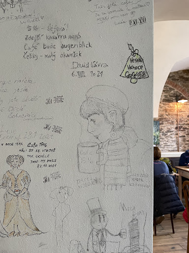 Read moreDokonce i v jáchymovské divočině najdete normální kavárnu. Normální ve smyslu výběrové kávy (Nordbeans, protože horalové držej při sobě), lokálních dobrot včetně místních pivovarů, sympatického interiéru a paní majitelky, která se do projektu v nádherném domě z 16. století (prohlídky možné) pustila prostě proto, že tu kavárna chyběla. Klobouček, tomu říkám služba veřejnosti! Takže pokud se někdy vyskytnete poblíž, nezapomeňte se vydat pár kroků z hlavní a dejte si něco, nebudete litovat. Vytkla bych snad jedinou věc, a to že otvírací doba by mohla být...