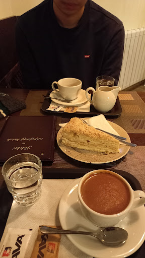 The server there (probably the owner himself) warmly insisted we try one of the home-made cakes, so we asked for whatever he recommended most. We unfortunately don't know what it was called, but it was kind of like a multiply-layered Cremeschnitte with the most exceptional taste!