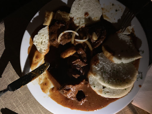 Read moreAuf unserer Heimfahrt von Karlsbad hielten wir ihr an und wollten hier zu Mittagessen. Vorweg möchte ich das schöne Ambiente erwähnen. Es saß noch ein weiteres Paar im Gastraum, dass ausgiebig schlemmte. Zuerst kam der Kellner mit den Worten, "ich bin nicht der Kellner, aber ich bin der Koch." Warum diese Ansage? Na ja, wir bestellten ein Schnitzel mit Pommes Frites und einmal Lachs bei ihm. Der Lachs, bestätigte meine Partnerin, war sehr, sehr lecker. Mein Schnitzel und die Pommes Frites schwammen noch auf dem Teller in Öl. Selbst beim Anschneiden des Schnitzeln's spritzte das Öl heraus. Die Panade war ganz laprig. Gleiches gilt für die Pommes Frites. Dafür drei Sterne Abzug. Ein Stern Plus gebe ich für die Freundlichkeit des "Kneipers". Dann nahm ich noch zwei Stück Kuchen, der auf einem Austeller beworben wurden, mit. Der Kuchen war klasse. Wir aßen ihn, bei einer Tasse Kaffee gleich nach...
