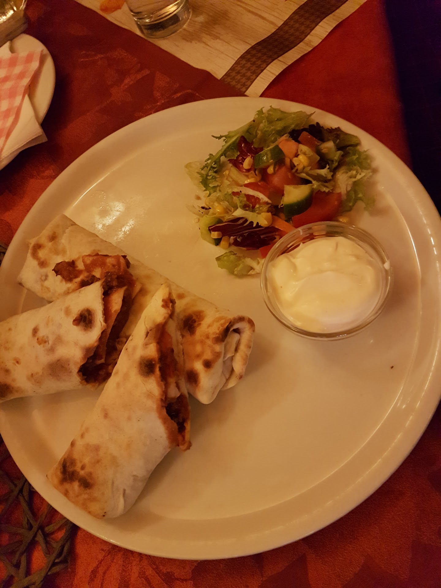 I had a rucola pizza and the taste was good altough the pizza dough was not completely done when served -a pity. You can also taste that the pizza's aren't made in a stone oven and the dough is from the freezer. My mother had the gnocchi chicken and brocolli wich was salty.