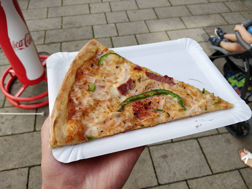 Read moreFresh prepared pizza, on the go, still warm and different options available. Good prices and a quick service. A plus is that you can pay by card as well without extra to pay, even for only one slice. I went here during summer and standing tables are at...