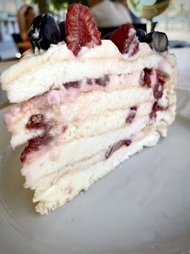 I came to try Pavlova cake, because of many good reviews about it. Main thing: it's extremely sweet. And I love sweet in general. But this was for real away too much sugar. The portion is huge (what is the point of that?!). The classic promise of Pavlova cake is merengue that is crusty on the outside and chewy on the inside. It was not the case in this restaurant. There is a crunch on the outside yes, but the chewy part was non-existent. There was a lot of zefir layers which should not be a part of Pavlova cake at all and a lot of fat whipped cream, I could barely taste Mascarpone. And everything very very sugary.