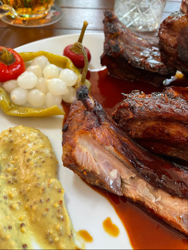 Service was five-star and the prices were very reasonable. It was easy to make a reservation online and when we arrived, we were welcomed warmly, as if everyone was happy to see us. I always feel a bit awkward not being able to speak Czech, but our server was good humored and attentive. My husband scored a Czech/ English menu, mine was Czech/German - which was no problem as my German is good enough to read a menu :-) We dined on the patio and it’s a relatively peaceful setting, just off the street and well shaded by mature trees - very pleasant. I had the pork ribs and my husband had the duck. I haven’t had BBQ since leaving the States several months ago, and was surprised that my ribs came relatively close. The sauce didn’t taste of chilis at all, but more like a very mild Texas style BBQ sauce with a slightly sweet finish. It paired well with the mustard and pickled onions on the plate. I assume in hindsight that the chilis mentioned on the menu referred to the peppers on the plate and not the sauce. My only complaint is the ends were dry. There were about three ribs in the middle that were perfectly cooked. But, they all had a very nice flavor and caramelized char, perhaps they were basted with honey? Plus, there was enough on my plate for me to take away. They packed it in a styrofoam box, so if you are in a hotel and don’t have a dish to reheat in, keep that in mind. My husband really enjoyed his roasted duck leg but thought there was a bit too much kraut. He was also a bit disappointed that there wasn’t a brew master’s choice beer on offer as described on the website. He was hoping to try something new. Our meals were substantial enough that I am glad we didn’t order an appetizer. We also did not have room for dessert. Overall, we had a great lunch and will return. It’s also a place we’d share with friends and recommend to...