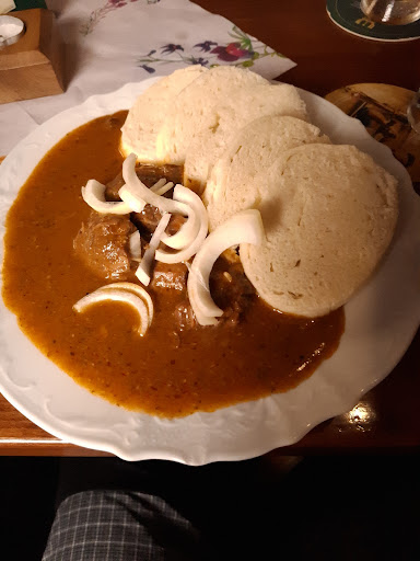 I'd like to first start off with the food. I had the goulash they had with beef, but the beef was overcooked, which meant it was not only dry but also hard to cut as well if you did not want to cut with the grain, and the fat was not syncing very well with the meat, yet there was a lot of fat which made up slightly for the taste. 🥩 The sauce was not seasoned well, I could only taste the goulash spices and what tasted like basil. The sauce had a good amount of pepper but not enough salt. There was salt that I could grab from the table though, but it would have been slightly more convenient if the sauce was already salted a bit more. The sauce also had this vibe of having too many tomatoes, something like when you make curry but you add too much tomato sauce. It also had this watery feel that did not make me feel as full as I would have thought, and the watery-ness of the sauce made it harder to pick it up by knedlíček. 💧 The knedlícky were overall pretty solid, just that the consistency and texture was a bit off, almost tasted like a bad oatmeal at times because of the watery sauce. Did not taste like the goulash I know, big disappointment it could have not beed made better. No harsh feelings, just saying!