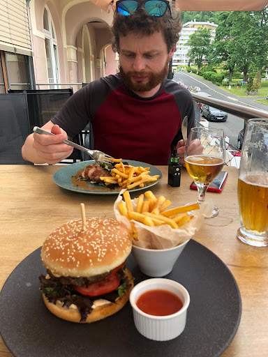 Read moreVyrazili jsme sem jakožto do nejlepší restaurace v Jáchymově a bohužel jsme se zklamali. Na webu mají uvedená žebra, na jídelním lístku na místě je ale nemají a když jsem se na ně ptal, tak už je před časem vyřadili z jídelního lístku a ještě je prý kvůli tomu předělávali. Nebylo by od věci, změnit to i na webu ... Jídlo nebylo špatné, ale ani výborné. Bylo průměrné. Nealko pivo v lahvi neurazí, ale ani nenadchne. Objednal jsem si předkrm (tatarák z lososa), který mi zapomněli přinést a rovnou přinesli hlavní jídlo. Zmínil jsem se tedy, že jsem měl mít ještě předkrm, tak obsluha navrhla, zda mi nevadí, dát si ho jako dezert ...